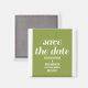 Charm Save the Date Magnet in olive green and white with a whimsical typography design. This trendy and modern save the date magnet is easy to customise with your wedding details. For more customisation options, click on the Customise It button.