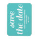 Charm Save the Date Magnet in turquoise and white with a whimsical typography design. This trendy and modern save the date magnet is easy to customise with your wedding details. For more customisation options, click on the Customise It button.