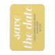 Charm Save the Date Magnet in yellow and white with a whimsical typography design. This trendy and modern save the date magnet is easy to customise with your wedding details. For more customisation options, click on the Customise It button.