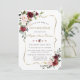 Elegant card design featuring watercolour delicate burgundy pink blush flowers and green leaves, a faux gold frame, floral divider, on a white background. On the back blush flowers bouquet. Use Personalise tool to add your info, change fonts, font's colours. For matching items, please, visit my Burgundy Blush Flowers Collection.