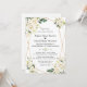 Charming design featuring a faux gold frame decorated with watercolour white cream flowers, green leaves bouquets, floral divider; on the back white floral wreath in a heart shape, initials, on white background. Matching items could be found in my White Flowers Bloom Collection.