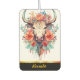 This delightful air freshener features an artistic depiction of a cow adorned with vibrant flowers in shades of orange and pink. The intricate design incorporates leafy elements, emphasizing a whimsical blend of nature and charm.