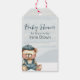 Are you planning a casual and cosy environment for your baby shower festivities? Consider this charming baby shower gift tag. Features soft blue, white, and tan colours for a relaxed and playful appeal. Bear Jean Baby design. Use the template to personalise.