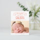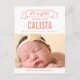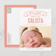 Sweet and full of charm, this modern photo birth announcement is the perfect way to introduce the newest member of your family. Personalise the rear side of the postcard with your return address for easy mailing. Custom colour available upon request.