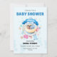 This delightful baby shower invitation features a serene pastel blue background, adorned with playful baby-themed graphics, including bottles, clothes, and toys. At the centre, a sleeping newborn nestled on a crescent moon captures the heartwarming essence of the occasion. The invitation provides all essential details in a clean, easy-to-read font. Perfect for celebrating the upcoming arrival with friends and family, this invitation combines cuteness with elegance to set the perfect tone for the event.