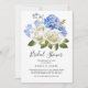 Charming Blue Hydrangea | White Bridal Shower Invitation