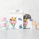 This charming gift wrap for birthdays, baby showers, baby's 1st birthday, and other special events features a classic white background with pretty watercolor Spring flowers, tulips in a glass vase, and gentle wildflowers in a steel tub. So fresh and pretty for Spring.