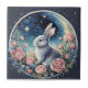 Charming Bunny in a Spring Meadow Under a Starry W Ceramic Tile