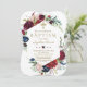 Charming Burgundy Blue Floral Wreath Girl Baptism Invitation