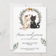 Celebrate your special day with our enchanting cat couple wedding invitation, featuring adorable white and black feline illustrations nestled in a delicate floral wreath. This whimsical yet elegant design captures the essence of true love with a touch of playful charm, perfect for cat enthusiasts and couples seeking a unique, pet-inspired wedding theme. Customizable with your own details, this invitation sets the tone for a memorable and heartwarming celebration of your union.