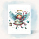 This cute angel is illustrated in folk art style. The Merry Christmas sentiment can be changed. Did you know you can recycle your greeting cards by adding a frame and hanging them as miniature art? They make great holiday aesthetic home decor. AI assisted graphic purchased with commercial use. Artwork: RedHeronLighthouse