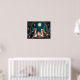 Embrace the festive spirit with this charming art print of a curious kittens surrounded by Christmas decorations under a winter moon.
