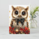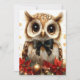 A charming Christmas card featuring a cute owl with big, wide eyes, perched and full of holiday spirit. This little owl's curious gaze and sweet expression make it perfect for spreading joy and wonder to loved ones this festive season.