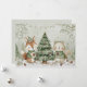 Charming winter scene with cute animals gathered around Christmas tree Merry Christmas card. Option to add your own greetings.