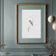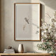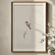 The Downy Woodpecker is depicted with its characteristic mottled plumage of crisp white and striking black markings. Its underparts are a clean white or snowy hue, contrasting with its black-and-white striped head and back. The male is identifiable by a vibrant patch of reddish-orange or rufous on its crown, adding a pop of warm colour. The delicate, winding branch and its subtle, beige or sepia-toned dried leaves add to the organic and natural feel of the piece. This artwork is a wonderful celebration of this beloved backyard visitor, bringing a touch of quiet elegance and natural sophistication to any home, office, or cabin decor.