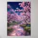 A serene stream gracefully winds its way through a charming field, where rows of cherry trees stand in full bloom, creating a breathtaking spectacle. Delicate pink blossoms cascade like a soft veil, adorning the branches and carpeting the ground below. The gentle flow of the stream adds a soothing soundtrack to the scene, as if nature itself is whispering a lullaby.