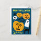 Charming Funny Pumpkins Ghost Bat HAPPY HALLOWEEN Postcard