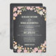 Lovely flowers in soft pink, apricot and blush with berries and blooms in ivory set against a trendy black chalkboard background frames your wedding invitation in charming style. Perfect for a spring or summer wedding or when a garden or outdoor theme is part of your special day. Whimsical mix of typography adds fun and flair. Coordinating products in this suite include response card, reception card, postage, place cards, table number cards, address labels and favour stickers - everything you need for a charming and complete wedding ensemble.