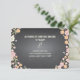 Lovely flowers in soft pink, apricot and blush with berries and blooms in ivory set against a trendy black chalkboard background frames your wedding reception card in charming style. Perfect for a spring or summer wedding or when a garden or outdoor theme is part of your special day. Whimsical mix of typography adds fun and flair. Coordinating products in this suite include invitation, rsvp card, postage, place cards, table number cards, address labels and favour stickers - everything you need for a charming and complete wedding ensemble.
