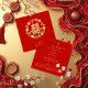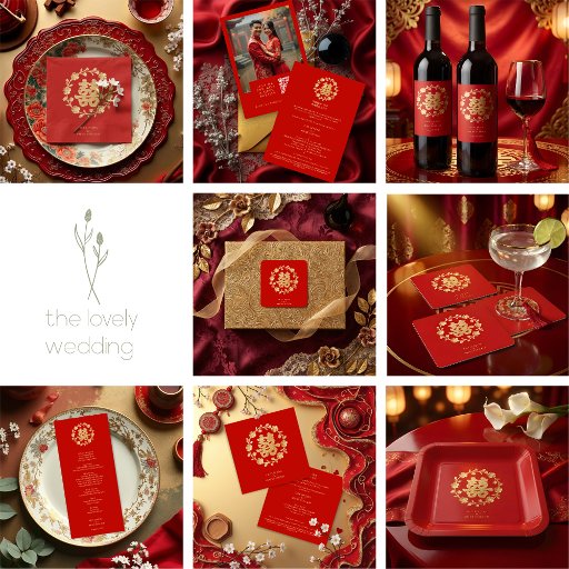 This design features a Chinese Double Happiness symbol combined with a delicate glitter effect and surrounded by an elegant and harmonious floral composition. The sparkling details add a sophisticated and festive touch that highlights the beauty of the flowers without overshadowing them, creating a refined, culturally rich style full of meaning. The design offers visual balance and a modern feel while maintaining the classic essence of Chinese tradition.
