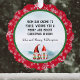 This design features two charming gnomes on both sides, with a greeting that you can customise, as well as a plceholder for your famiily's name(s). The front has a closeup of the gnomes with Gnoel, Gnoel, with trees in the background. On the back, there's a mountain scene with the customizeable greeting: "From Our Gnome to Yours: Wishing you a Merry and Bright Christmas Season" and your signature. Both sides of this whimsical design are trimmed in red and white snowflakes.