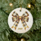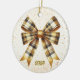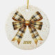 Charming Gold Plaid Bow Year Accent Ceramic Ornament