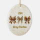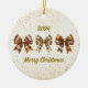 This charming holiday ornament features a row of gold bows all featuring plaid patterns. They nestle on a backdrop of gold dots with the year accented in gold font. The back of ornament features smaller speckled dots. This stylish, bow-themed ornament will add a touch of elegance to any tree. Customise for the year.
