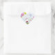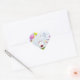This charming ladybug holds a colourful bouquet of heart-shaped balloons as she stands among some colourful heart-shaped flowers. The balloons and flowers are coloured in purple, pink, yellow, blue, and green. Personalise these stickers by adding other text or deleting them to leave them blank. It is based on an original art piece by © One Artsy Momma.