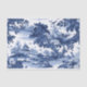 A lovely blue and white toile scene with floral hints.
