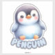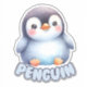 This large nursery sticker features an adorable, cartoon-style penguin with a cheerful and friendly expression. The penguin is illustrated standing with its round body and flippers slightly out to the sides. It has a soft, fluffy appearance with a dark grey head, white belly, and light blue shading on its body. The penguin's big, bright eyes and rosy cheeks, along with its cute orange beak and feet, add to its charm. Below the penguin, the word "PENGUIN" is written in bold, playful letters, perfectly matching the sweet and inviting
