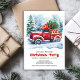 Celebrate the holiday season in timeless style with this charming Christmas invitation featuring a cozy watercolor red truck Christmas scene. Designed in a warm rustic aesthetic with subtle vintage touches, this invitation blends classic red-and-green tones, soft winter greenery, and bold playful lettering to create a festive and nostalgic mood. The hand-painted red truck adds a delightful seasonal charm, perfect for any holiday gathering—from family celebrations to office parties, winter weddings, or neighborhood events.