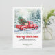 Bring the heartwarming magic of the holidays to every mailbox with this charming Christmas greeting card featuring a watercolor red truck Christmas scene in a cozy rustic style. Inspired by classic holiday nostalgia, this design blends soft watercolor textures, a vintage red truck, festive greenery, and a serene seasonal backdrop to create a warm and welcoming atmosphere. The classic red and green color palette paired with bold playful lettering adds a cheerful touch that feels both timeless and modern.