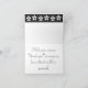 This elegant note card features a black border along the bottom edge of the card with a pattern of delicate white cherry blossoms and a simple script "Thank You" on the front. Inside, you'll find a matching black and spring-themed border along the top flap, and a space to fill in your own custom message of gratitude. A large sakura in black adorns the back to add a final touch of class. Customise the text on the front and inside to suit your own tastes and purpose, including changing colour, size, and font if so desired. Be sure to check out the other products in the Charming Sakura in Black set to create a truly coordinated look for your event.