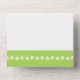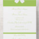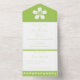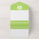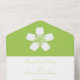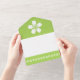 Bring touch of spring charm to your event with this all-in-one wedding invitation and RSVP card. On the inside you will find the white silhouette of a delicate cherry blossom on a bright peridot green background above a section with some sample text that can be customised for your special day. The lower section of the invite features a removable, postcard sized piece that has some sample RSVP text sitting above a pastel green border with a pattern of sakura blossoms dancing across the bottom. Outside, a similar border of cherry blossoms on peridot can be found below the areas where you would add stamps, standard, and return addresses for both the invitation as a whole and the returnable RSVP section. The flap used to fold over and seal the card has a single sakura flower on a peridot green background with a sample set of initials that you can customise for a final personal touch. Be sure to check out the rest of the Charming Sakura in Peridot set for other coordinating products, including return address labels.