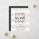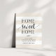 Charming and modern moving announcements let friends and family know about your new home sweet home! Design features a subtle striped background in cream beige and white, with "home sweet home" in soft black script and block typography. Use the template fields to add your custom intro, new address and names.