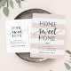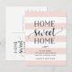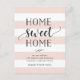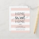 Charming and modern moving announcements let friends and family know about your new home sweet home! Design features a subtle striped background in blush pink and white, with "home sweet home" in soft black script and block typography. Use the template fields to add your custom intro, new address and names. Information repeats on the reverse side with space for recipient addressing.