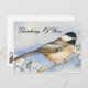 Send a "Thinking Of You"message with a charming chickadee perched in lovely flowers on this bird lovers postcard. Realistic details in black, cream and blue are shown from my original watercolor painting.