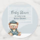 Are you planning a casual and cosy environment for your baby shower festivities? Consider this charming, unique baby shower confetti. The front and back features the special event along with the name of the mum-to-be. Soft blue, white, and tan colours for a relaxed and playful appeal. Bear Jean Baby design. Use the template to personalise.