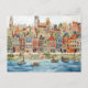 Charming Watercolor Cityscape of Belgian Postcard