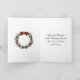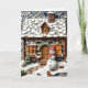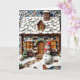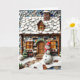 An enchanting Christmas card with an illustration mimicking a mosaic tile and stained glass Christmas cottage with a snowman in the front yard on a snowy winter night. The message inside the card can be personalised to write whatever you want.