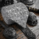 This Gothic inspired design takes inspiration from the charnel houses and cemeteries of Europe of the middle ages. Skulls intertwine with stone vines in this haunting design. The front and back present different designs making this tie reversible!