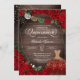 Charra Rustic Red Roses Glitter Dress Quinceañera Invitation