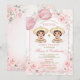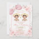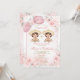 Charra Twin Girl Pink Floral Baptism 1st Birthday Invitation