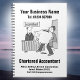 Chartered Accountant or Accountancy Illustration Design to Personalise. Notebook cover feature a drawing of an accountant who is surprised to see a client entering the office carrying a giant piggy-bank. Add the name and address of your business, and replace the central image with your own if you so choose.