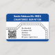 A stylish custom business card for a Chartered Surveyor or similar professional. The front of card has a tape measure design in the outline of a house, and can be personalised with your name and business type at the top. It also displays a QR code, which you can customise with your own website URL, for customers to scan for more information about your services. The reverse side of the card is blue, and can be personalised with your address, phone number and email address.