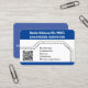 A stylish custom business card for a Chartered Surveyor or similar professional. The front of card has a tape measure design in the outline of a house, and can be personalised with your name and business type at the top. It also displays a QR code, which you can customise with your own website URL, for customers to scan for more information about your services. The reverse side of the card is blue, and can be personalised with your address, phone number and email address.