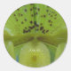 A beautiful paphiopedilum (slipper orchid) in bright chartreuse yellow green with lovely maroon deep brown spots makes a lovely and unique statement on wedding invitations or save the date cards. This round envelope seal will add a spark of stunning flair to any occasion envelope. Edit the text to make personalised stickers for your special celebration. (You can also delete all text).