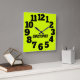Chartreuse Neon Yellow-Green Big Numbers Square Wall Clock