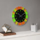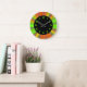 Chartreuse numbers on a black circle. You can replace the digital fractal art image with a photo and create your own gift wall clock. Sample image that forms circular border is fractal art with orange, yellow and lime green streaks.