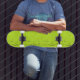 A beautiful skateboard on a chartreuse (neon) colour with stylish texture to make it interesting and fashionable.